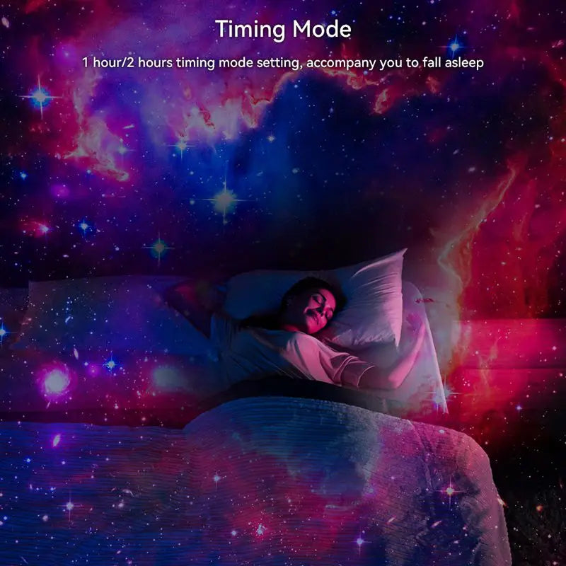 【User-friendly Design and Auto-off Timer】Our star projector for bedroom provides 0-360° flexible adjusted stand that increases the usability of the projector, so you can switch projecting between the room ceiling, wall or any places you want. With 2 auto-off timer options (1hour, 2hours), press it and it will automatically turn off when the time ends.